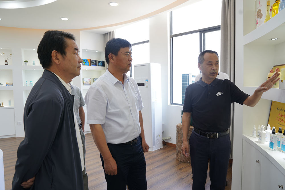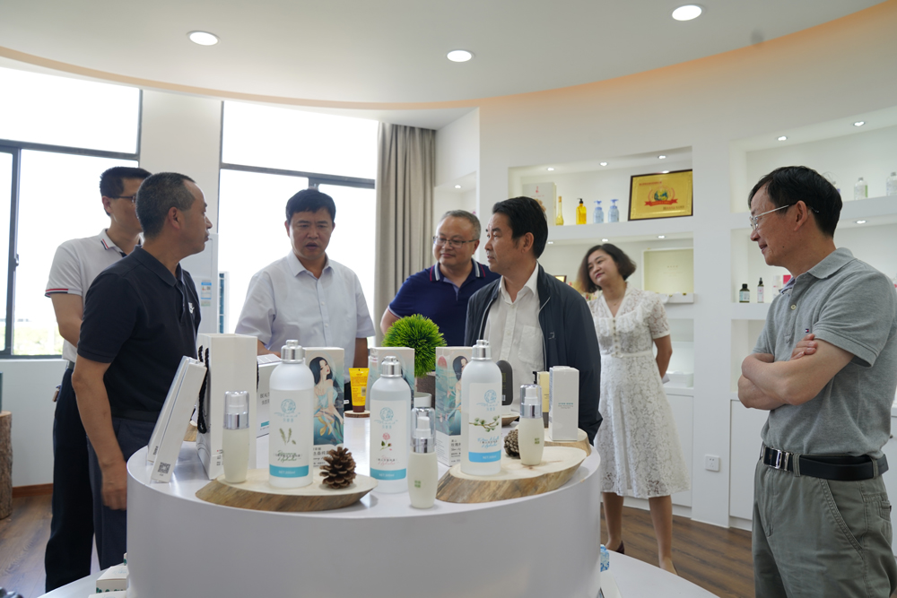 在成品展廳,張昌宏總經理重點介紹了公司自主品牌“花寄語”新品開發情況,張正竹還親自體驗了部分產品。當了解到“花寄語”產品以植物護膚為核心理念、以本地特色植物為原料的發展思路后,張正竹非常高興,對公司的快速發展和精準定位給予充分肯定和高度贊揚,并就如何進一步開發本地特色作物在化妝品中的應用提出了許多寶貴意見。